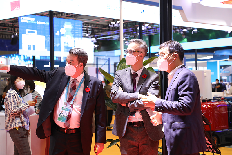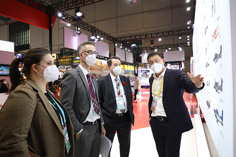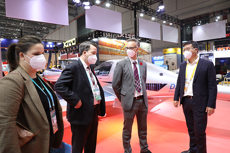 11月6日,加拿大驻上海总领事Dave Murphy和副总领事Alexandre Cerat一行到访进博会万丰钻石飞机展台参观,万丰航空团队陪同参观。